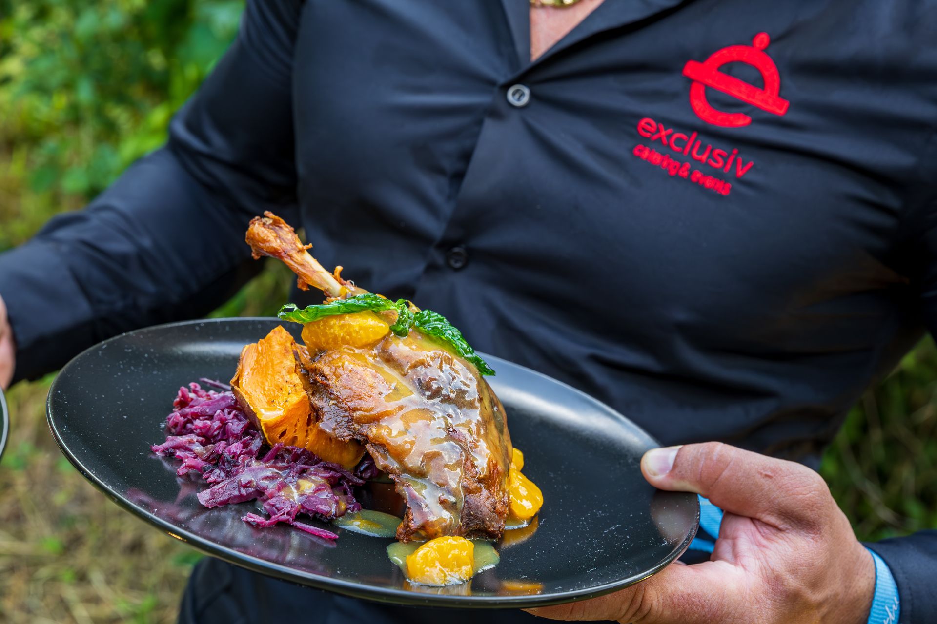 Pulpă de rață confiată în sos de portocale pe pat de varză roșie
